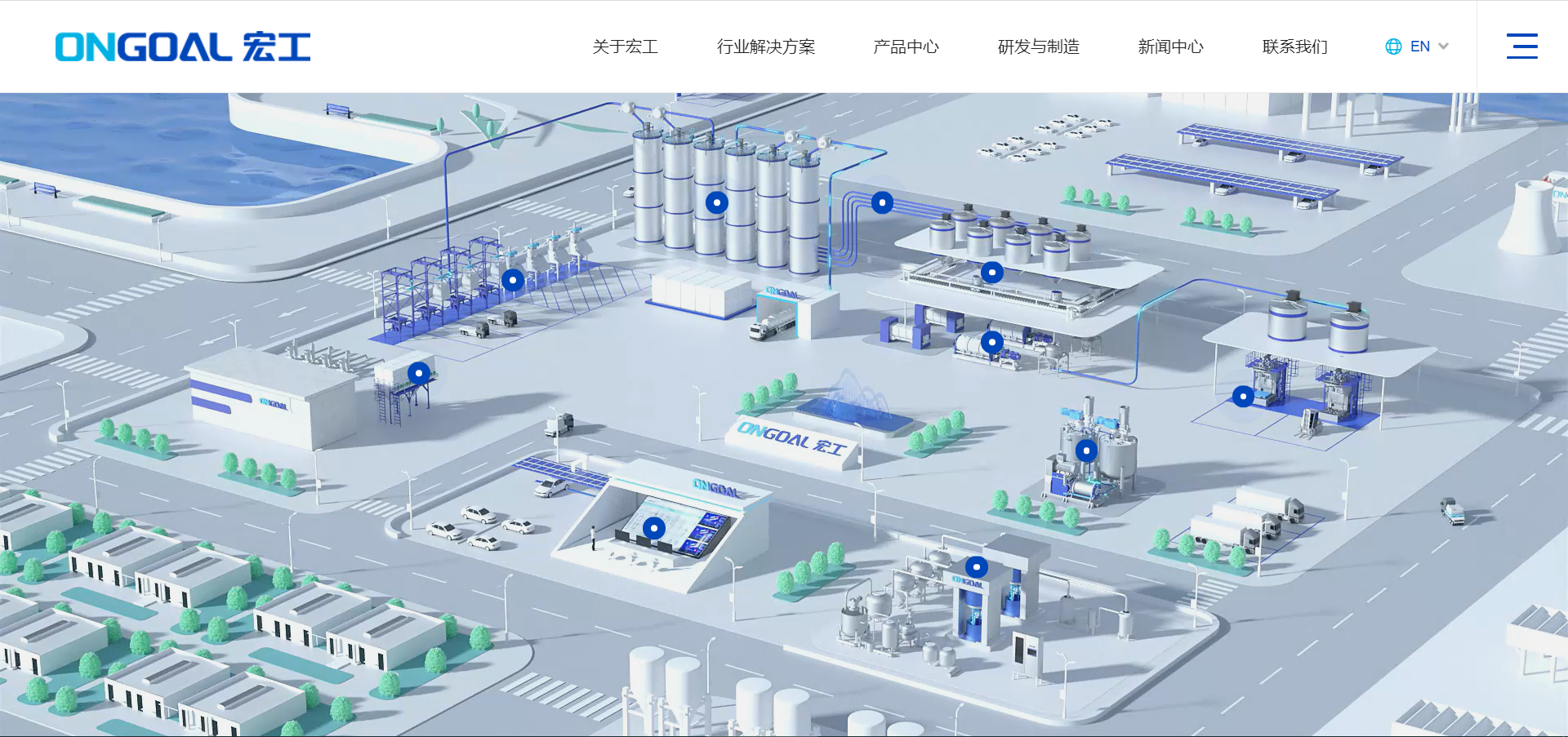 新版網站首頁啟用了全新的地圖導覽,從解包投料到成品包裝的一系列物料處理系統,宏工的業務地圖一覽無余,輕輕點擊即可了解更多詳細信息。