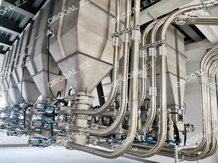 (3)根據不同物料的氣力輸送需求,對管道 輸送的溫度、濕度、壓力值、含靜電量等提出具體的要求,以減少物料粘壁發生的可能性。