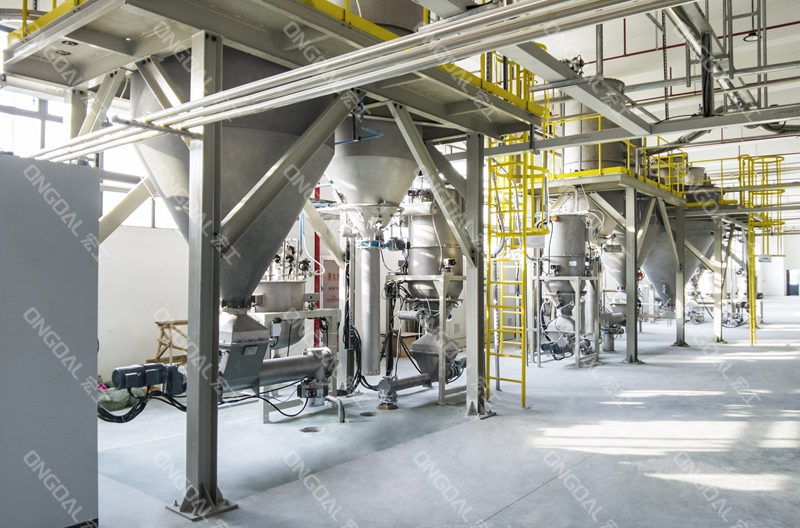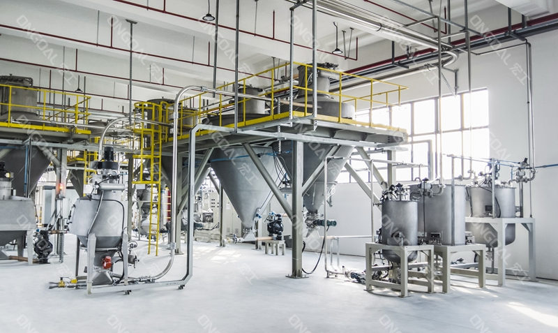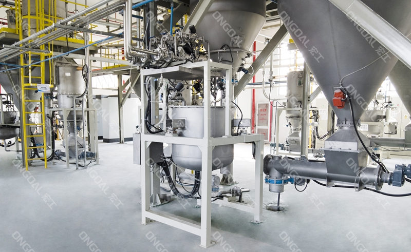 在投料環(huán)節(jié),針對不同物料特性設計差異化處理方案:通過負壓長距離輸送系統(tǒng)有效解決氫氧化鋁高溫物料的輸送安全,利用風冷技術將物料溫度降至工藝要求范圍;氧化鋅與白炭黑采用配備單點除塵裝置的小袋解包站,徹底消除人工投料時的粉塵逸散問題,其中白炭黑更采用隔膜泵輸送技術突破輕質粉體易漂浮的輸送瓶頸。