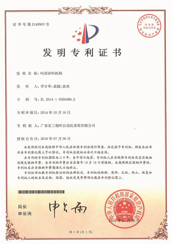 發(fā)明專利-噸袋卸料機(jī)構(gòu)